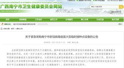 最近南宁的小伙伴们都在热议一个话题——新冠疫苗的最新动态!没错,就是那个能让我们远离病毒困扰的神奇疫苗。今天,就让我带你一起揭开南宁新冠疫苗的最新爆料,看看都有哪些新鲜事儿!